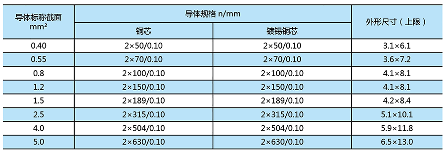 導(dǎo)體使用多股裸銅線和鍍錫銅線絞合